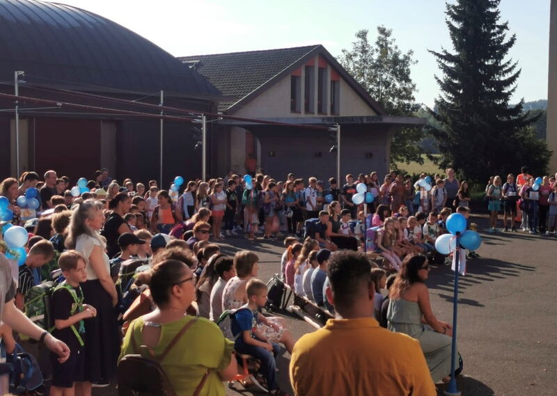 Am Montag, dem 14. August 2023 versammelten sich die Schülerinnen und Schüler der Primarschule Böttstein auf dem Pausenplatz vor dem Unterstufenschulhaus.