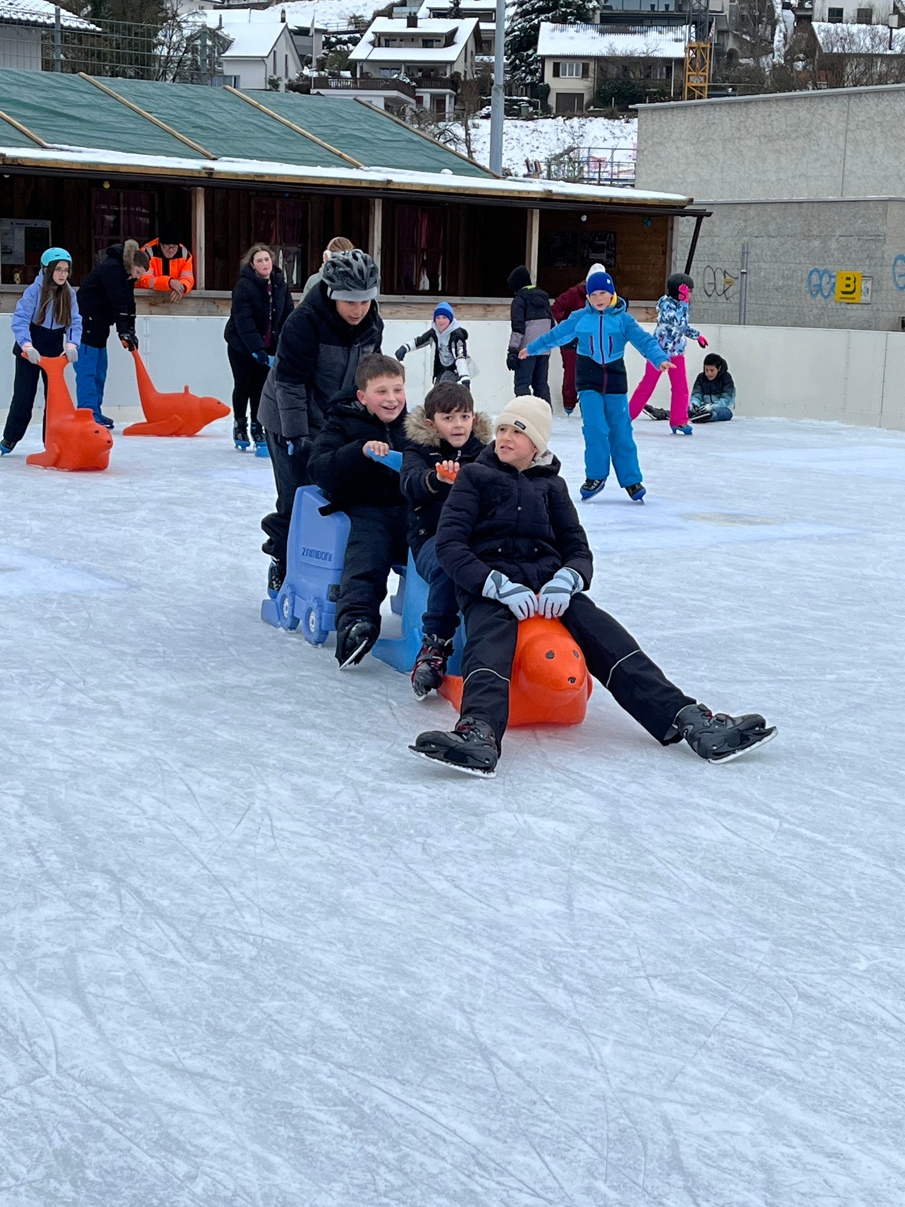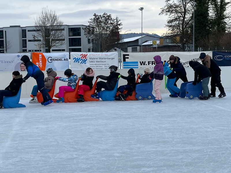 Mit dicken Handschuhen und leuchtenden Augen entstanden Schneemänner in allen Formen und Grössen, während anderswo wilde Schneeballschlachten ausbrachen und Kinder fröhliche Spuren wie kleine Kunstwerke in den frischen Schnee zogen. Im Januar ging das Winterabenteuer weiter: Auf dem Eisfeld in Döttingen schnallten alle gespannt die Schlittschuhe an.